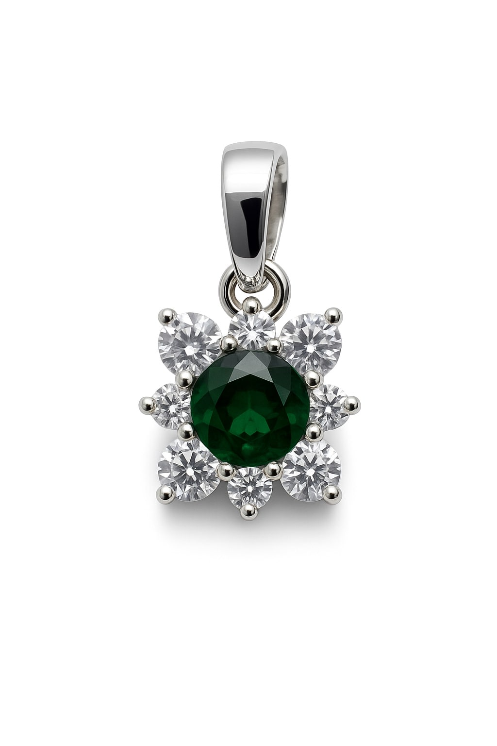Der Anhänger Emerald Focus verbindet klare Linien mit natürlicher Farbtiefe. Die zentrale smaragdgrüne Zirkonia zieht alle Blicke auf sich, während die umliegenden weißen Zirkonias das Design akzentuieren und betonen. Die leicht eckige, strukturierte Formgebung verleiht dem Anhänger eine ruhige, moderne Eleganz – kraftvoll und stilvoll zugleich. Die mit Zirkonias besetzte Öse rundet den Look ab und sorgt für zusätzliche Brillanz.