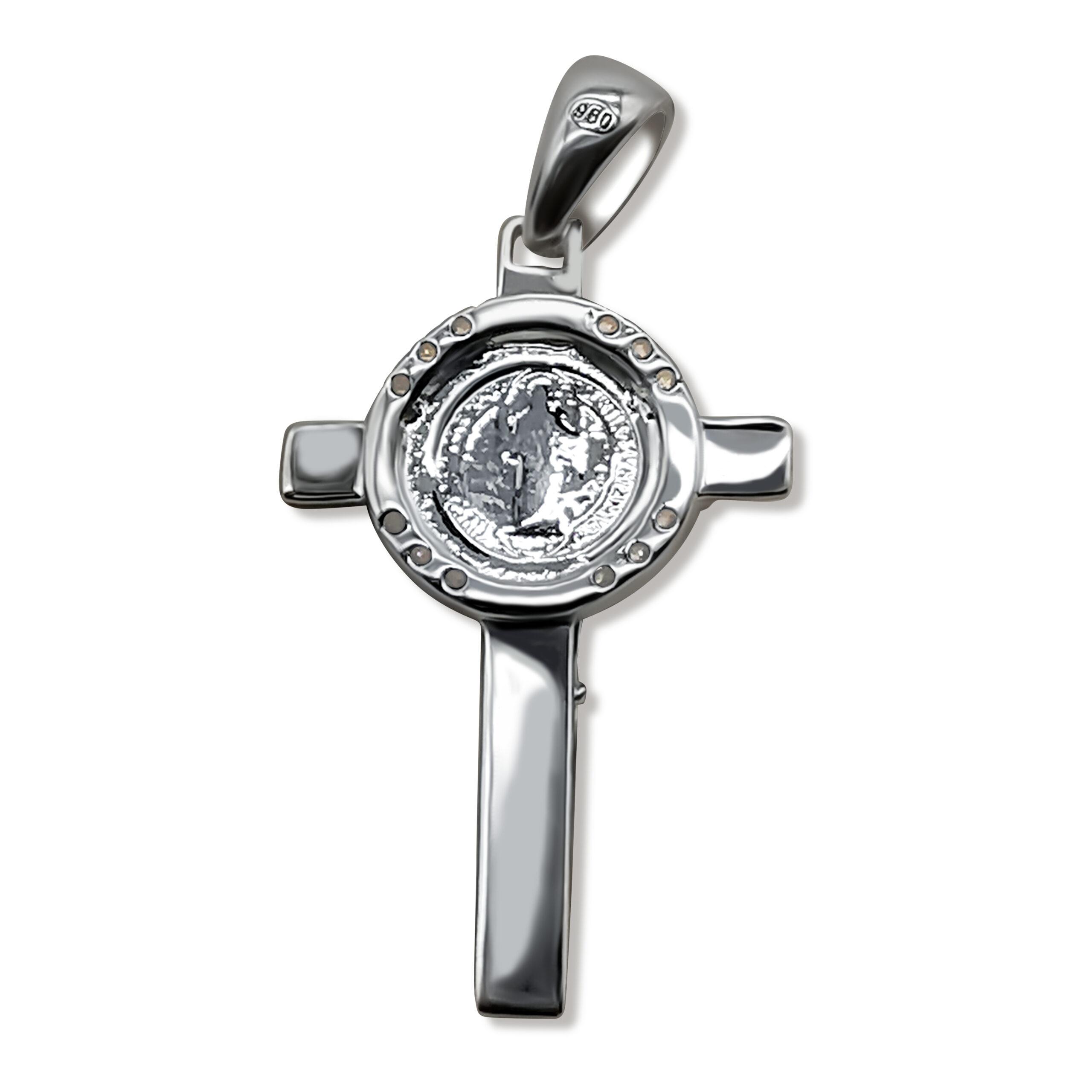 Erlebe spirituelle Eleganz mit diesem Kreuzanhänger aus 960 Argentium Silber. Der Anhänger misst 32 mm in der Höhe (inklusive Öse) und 16 mm in der Breite und beeindruckt durch eine detaillierte Darstellung von Jesus in der Mitte des Kreuzes. Der Rand des Kreises ist mit feinen weißen Zirkonias besetzt, die dem Design leuchtende Akzente verleihen. 960 Argentium bietet Dir eine höhere Reinheit und ist widerstandsfähiger gegen Anlaufen als 925 Sterling Silber, was für einen dauerhaft strahlenden Glanz sorgt. Hypoallergen und nickelfrei, sorgt dieser Anhänger für angenehmen Tragekomfort – ideal für Deine empfindliche Haut. Ergänze Deine Schmuckkollektion mit diesem eleganten Kreuzanhänger und setze bedeutungsvolle Akzente in Deinem Look!