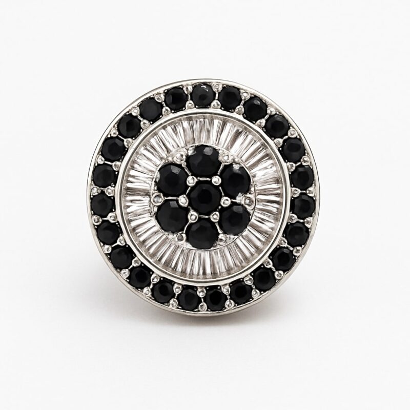 • Steine: schwarze und weiße Zirkonias, mehrreihig gesetzt