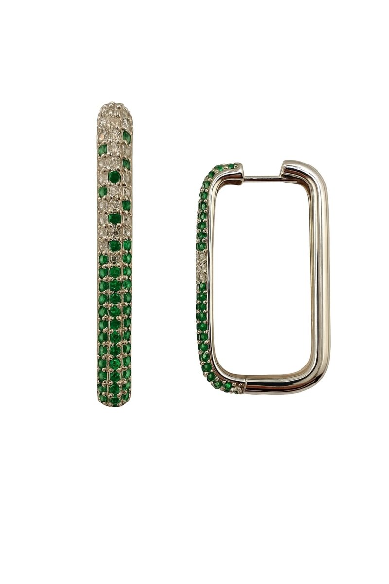 Emerald Lights steht für Eleganz mit Energie: Drei funkelnde Reihen fein gefasster Zirkonias verlaufen sanft von tiefem Smaragdgrün zu strahlendem Zirkoniaweiß. Die rechteckige Form verleiht dem Design eine moderne Präsenz, während die farbliche Komposition wie ein aufleuchtender Lichtverlauf wirkt – stark, stilvoll und luxuriös. Emerald Lights ist keine schlichte Creole, sondern ein echtes Statement mit Charakter.