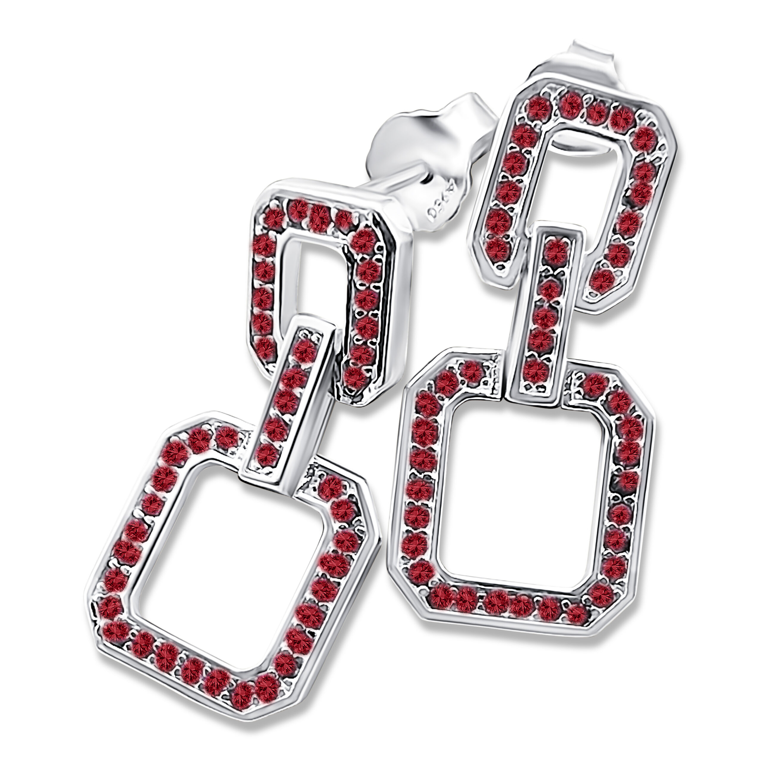 Bewegliche Ohrstecker mit roten Zirkonias – 21 mm