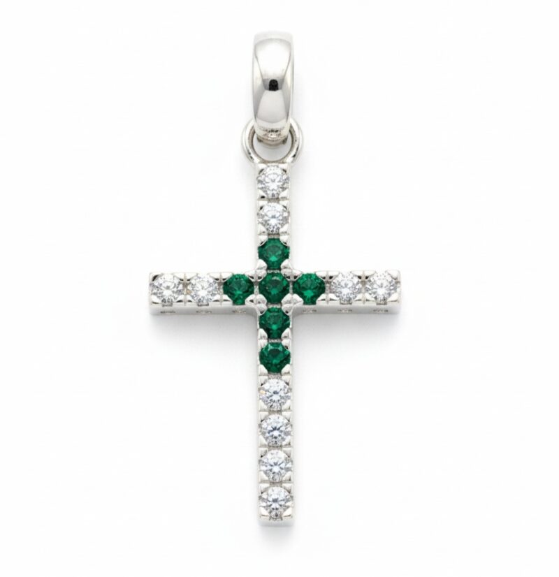Grace Verde verbindet klassisches Glaubenssymbol mit moderner Raffinesse. Das Kreuz-Design wird durch die Kombination aus weißen und grünen Zirkonias zum strahlenden Zentrum. Die grünen Steine in der Mitte stehen für Hoffnung, Heilung und innere Stärke – eingebettet in ein Licht aus Klarheit und Reinheit. Grace Verde wirkt dabei nicht aufdringlich, sondern ausdrucksstark und elegant – ein Kreuz für Menschen mit Haltung und Herz.