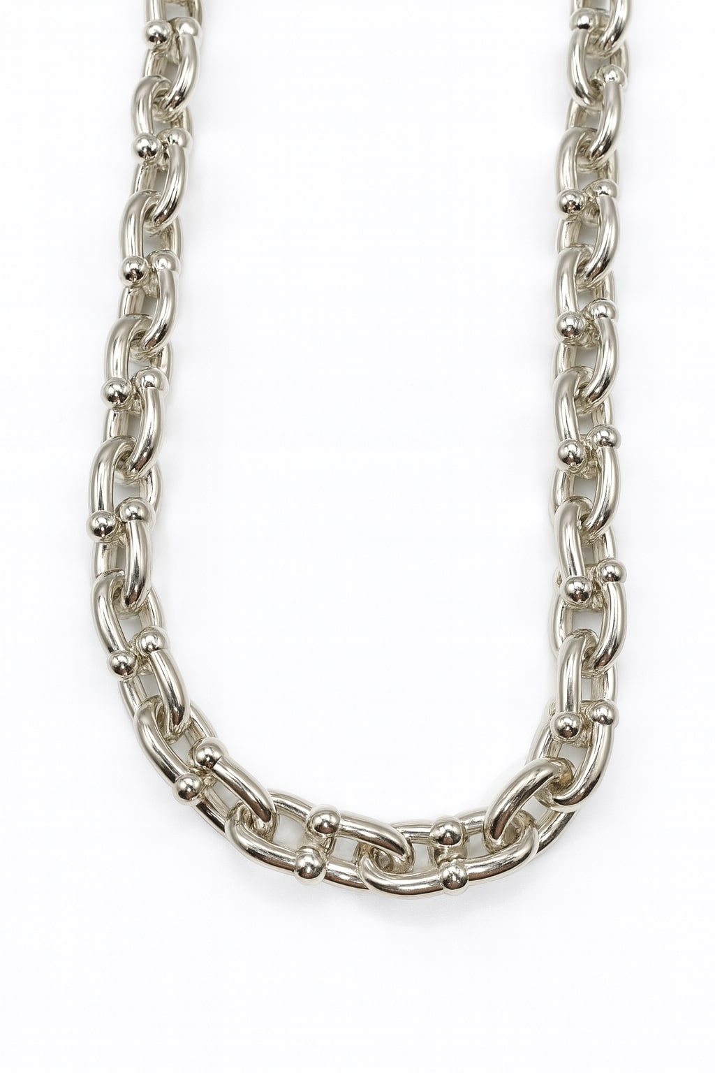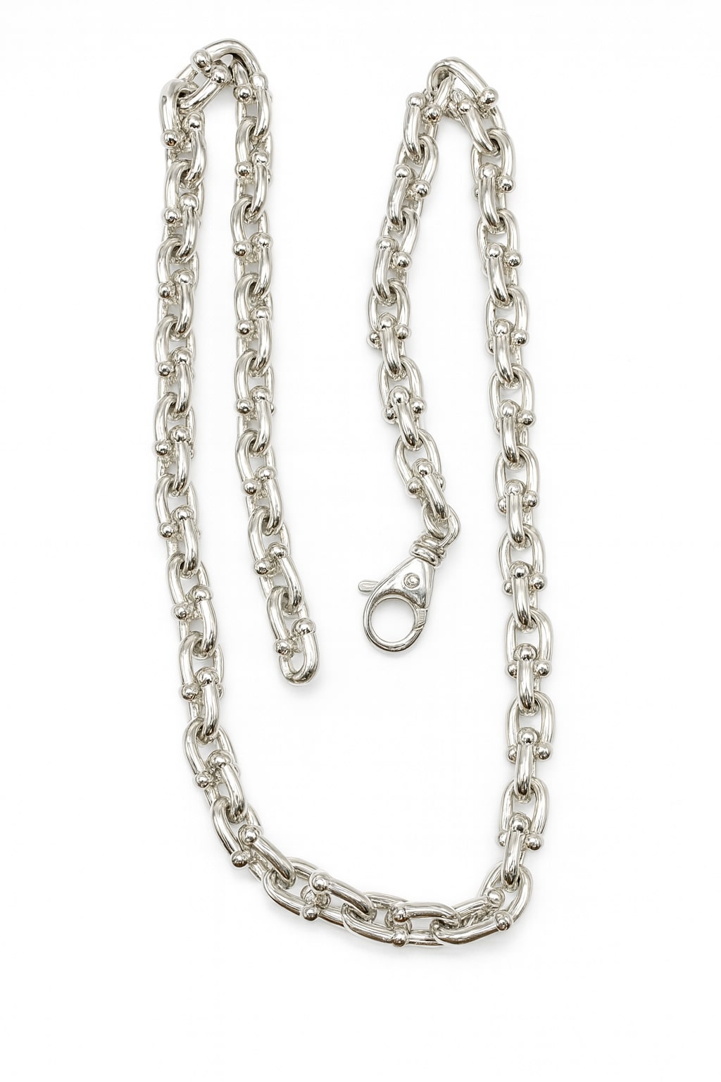„Prima Eterna“ bedeutet übersetzt: die Erste, die Ewige. Diese Kette ist ein klares Statement – kraftvoll, elegant und kompromisslos echt. Jedes Glied ist mit Präzision und Hingabe per Hand geknüpft. Die markante Struktur mit den feinen Silberkügelchen verleiht ihr eine unverwechselbare Dynamik und einen Hauch von ikonischer Extravaganz.