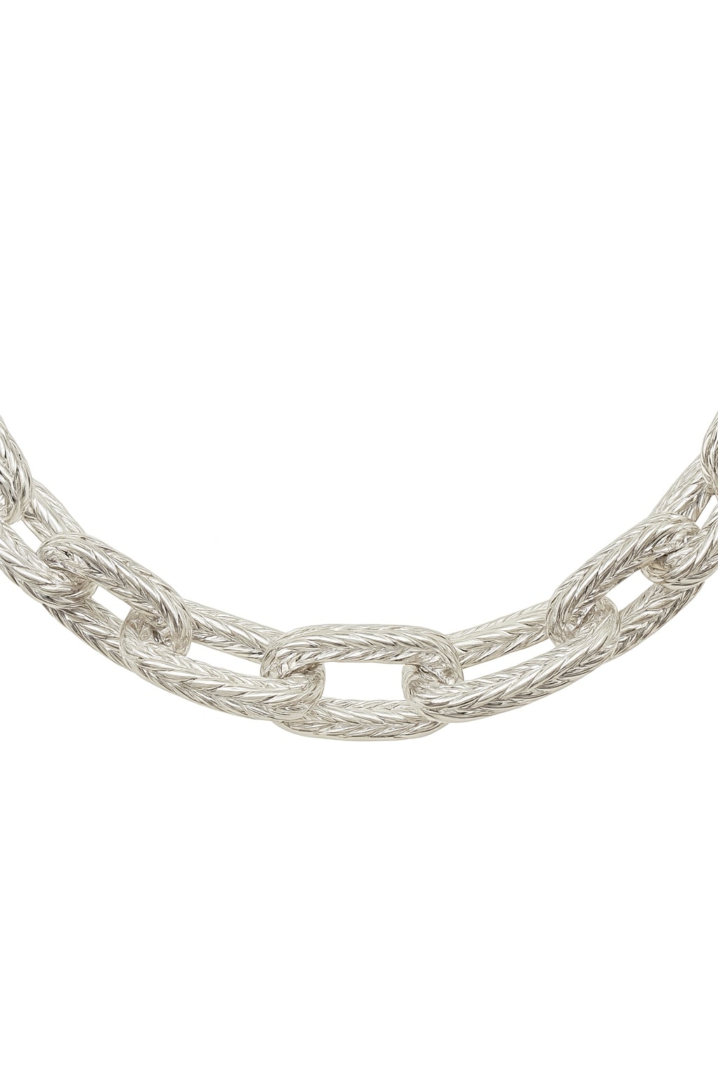 Jedes einzelne Glied wirkt wie ein Silberstrang, der aus vielen feinen Fäden verwoben wurde – eine Hommage an Handwerkskunst und fließende Linien.