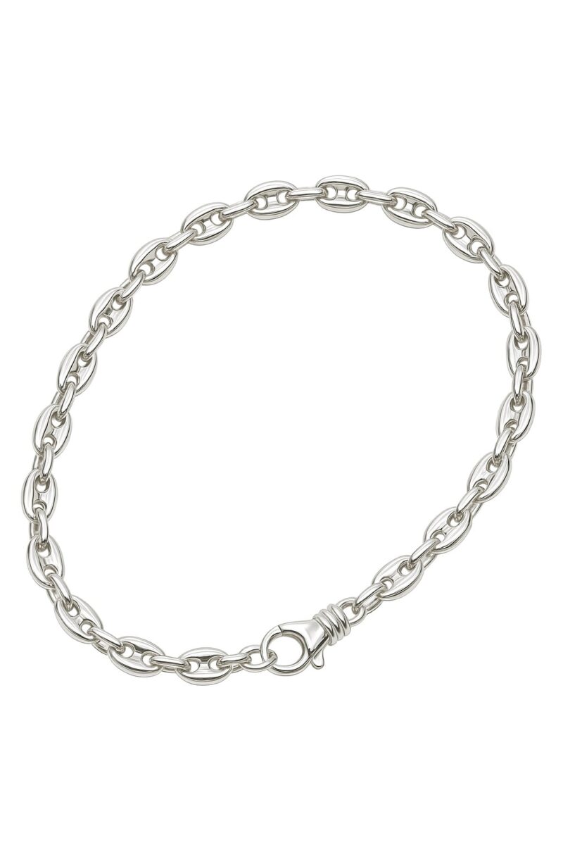 Die Prima Kaffeebohne vereint das ikonische Design traditioneller Kaffeebohnenketten mit der Reinheit modernen Silbers. Ihre abgerundeten, glänzenden Glieder strahlen Eleganz und Bodenständigkeit zugleich aus – ein Stil, der sich sowohl in urbaner Mode als auch in klassischer Garderobe souverän behauptet.