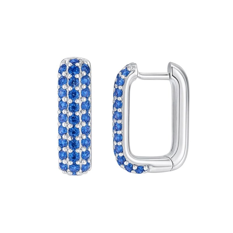 Blue Code steht für Klarheit, Kraft und Tiefe – drei Charakterzüge, die diese Creolen auf faszinierende Weise verkörpern. Das durchgehend intensive Saphirblau der Zirkoniastruktur wirkt kraftvoll und fokussiert – wie ein geheimer Code aus Licht. Die rechteckige Form verleiht dem Ohrschmuck moderne Struktur, die pavégefassten Steine bringen luxuriösen Glanz ins Spiel.