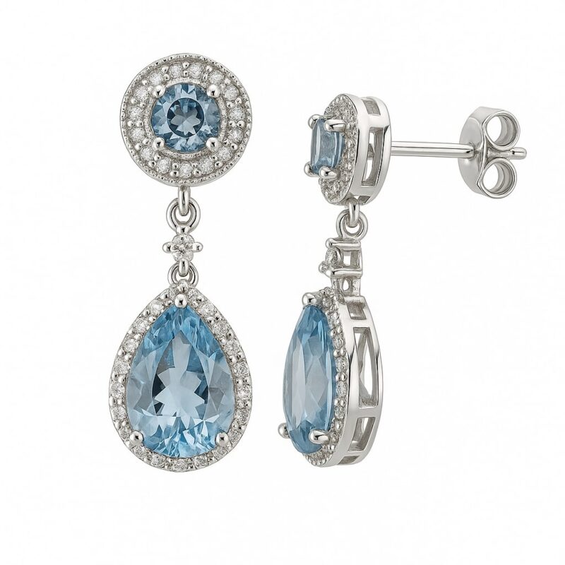Steine: himmelblaue Zirkonias im Tropfen- und Rundschliff