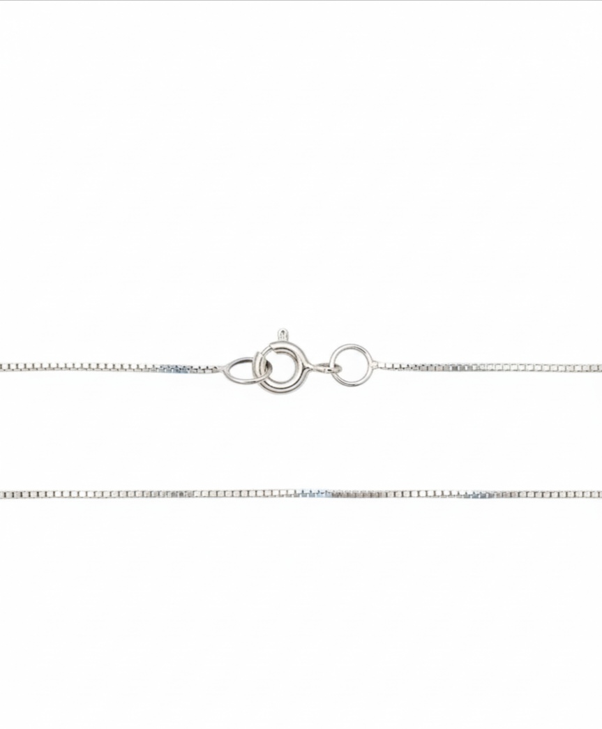 Diese filigrane Venezianerkette überzeugt durch ihre klare Form und zeitlose Eleganz. Das gleichmäßige Gliedmuster reflektiert das Licht mit feinem Glanz – dezent und stilvoll zugleich. Ideal geeignet für leichte Anhänger oder als puristisches Einzelstück.
