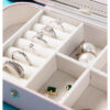 - Vielseitiger Innenraum: Der Innenraum der Schmuckbox ist durchdacht gestaltet. Ein Fach (10 cm x 3 cm x 2 cm) für kleinere Schmuckstücke, Platz für 6 Ringe oder kleinere Ohrringe und ein variables Fach, das herausgenommen werden kann, um größere Armreifen aufzubewahren.